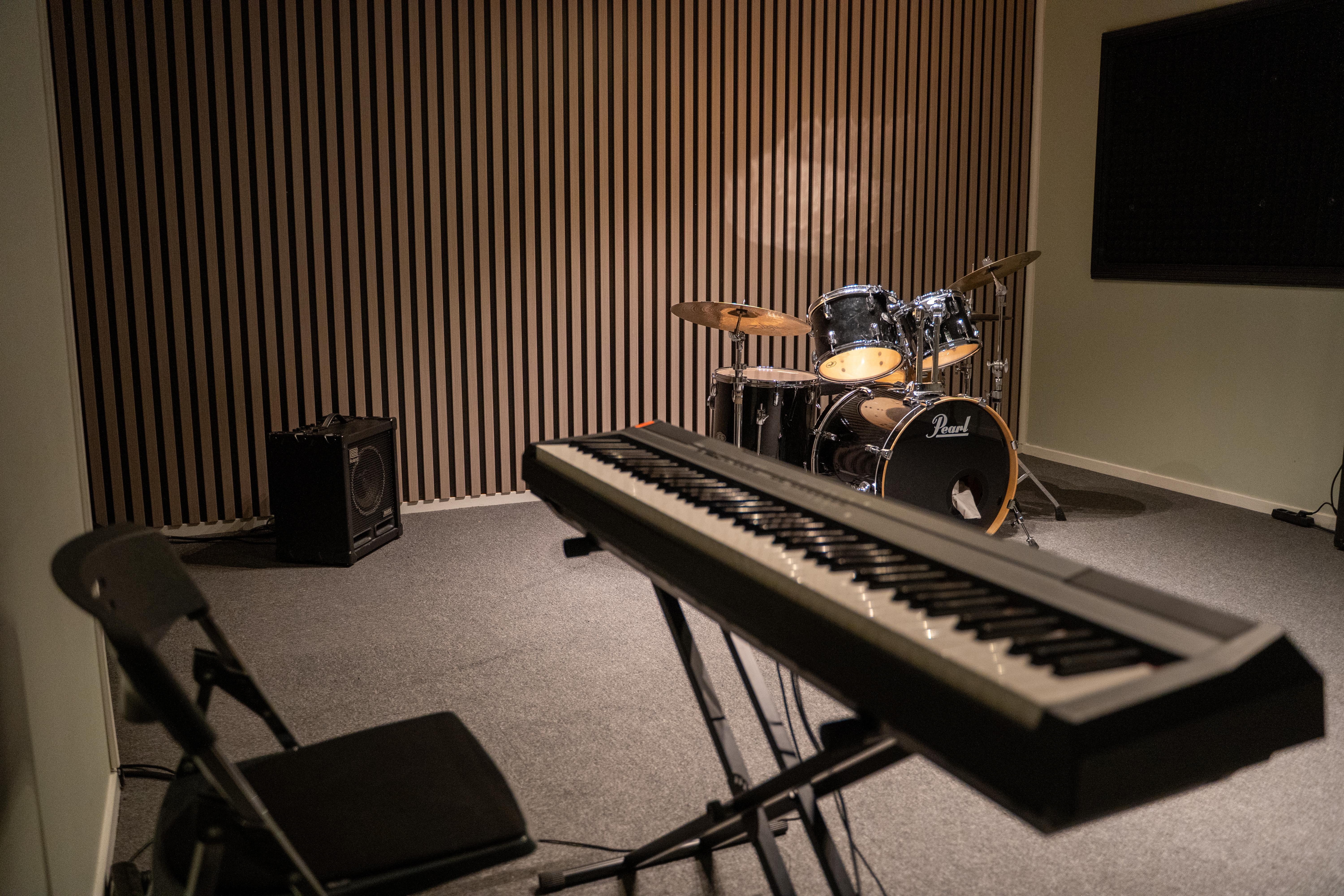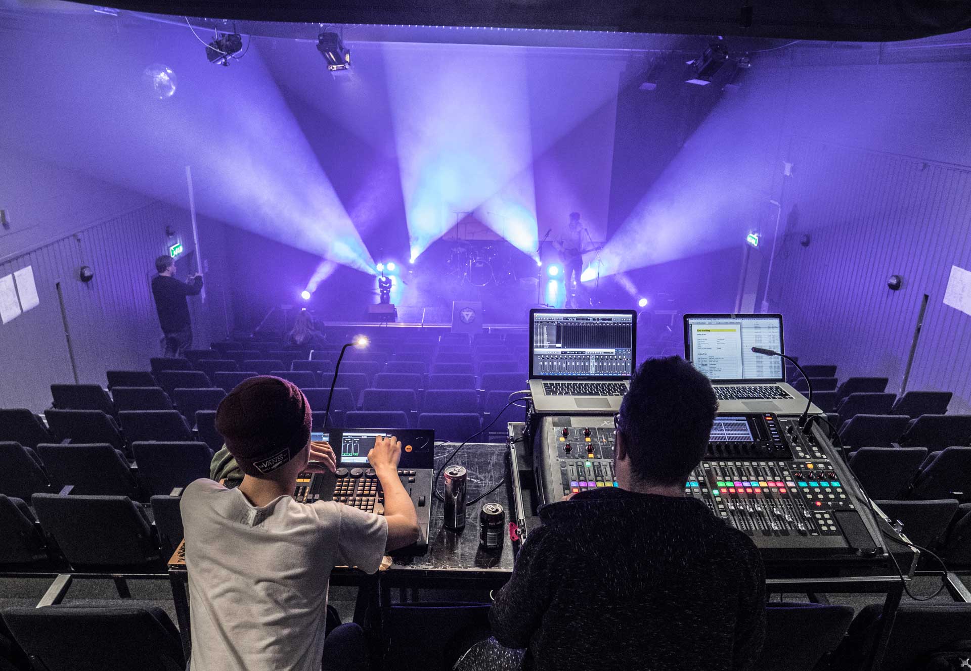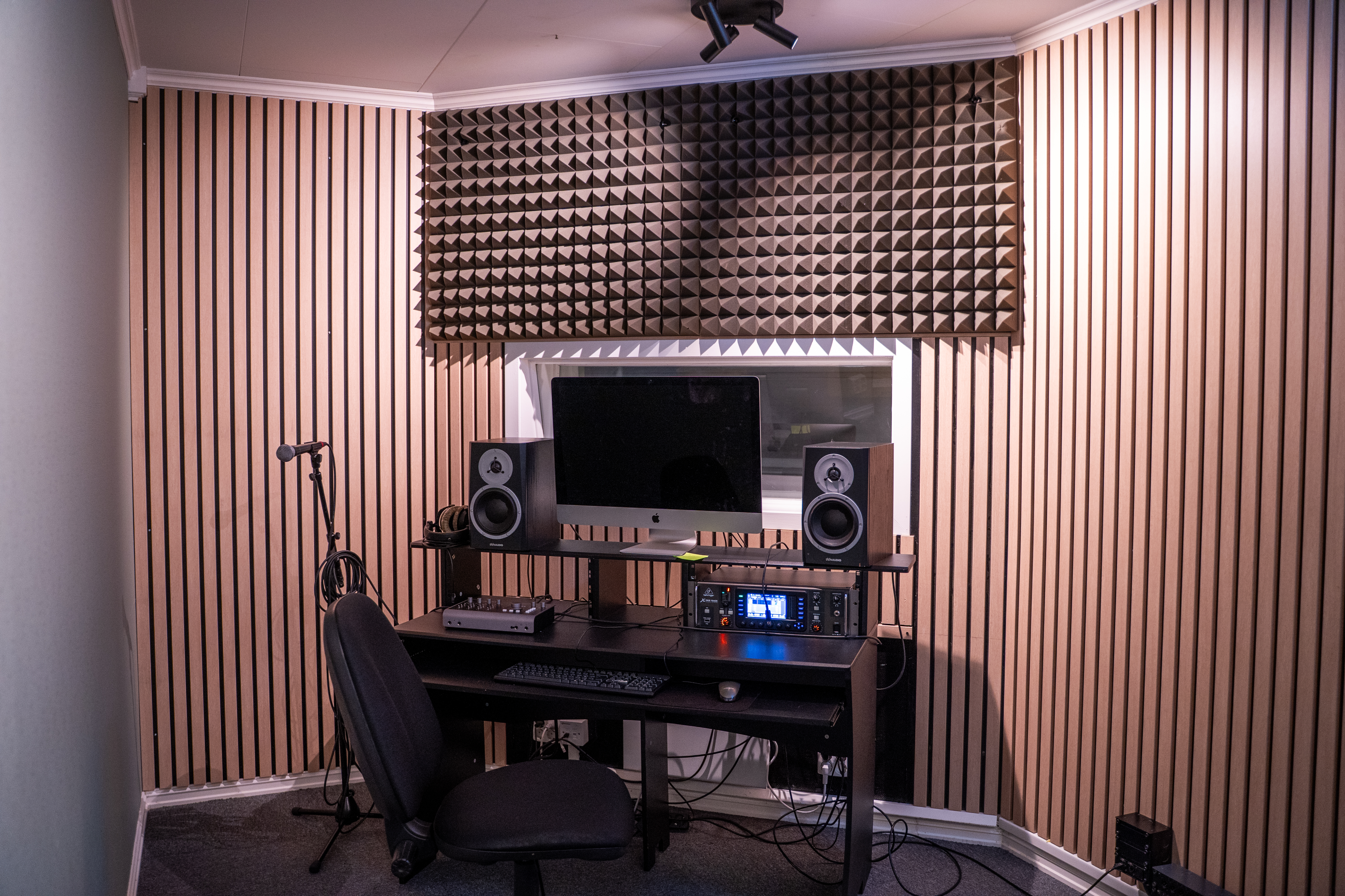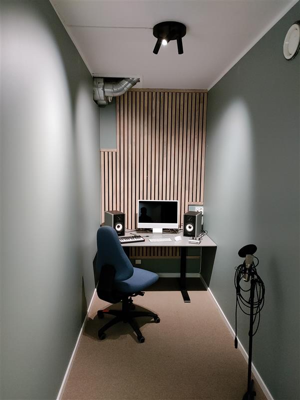 På Utøvende Musikk har du tilgang til fire musikkstudioer og tre samspillsrom, der ett er koblet opp for liveinnspilling av alle instrumenter. Vi har også konsertrom med flere fulle lyd- og lysrigger, og fire øvingsceller til egenøving. Du får bruke skolens mikrofoner, lydkort, instrumenter, programvare og headset. Det står Mac'er i tre av studioene og vi bruker Logic som programvare. Du kan også benytte egen laptop med egen programvare som du kan koble til lydkort og høytalere dersom du ønsker det.