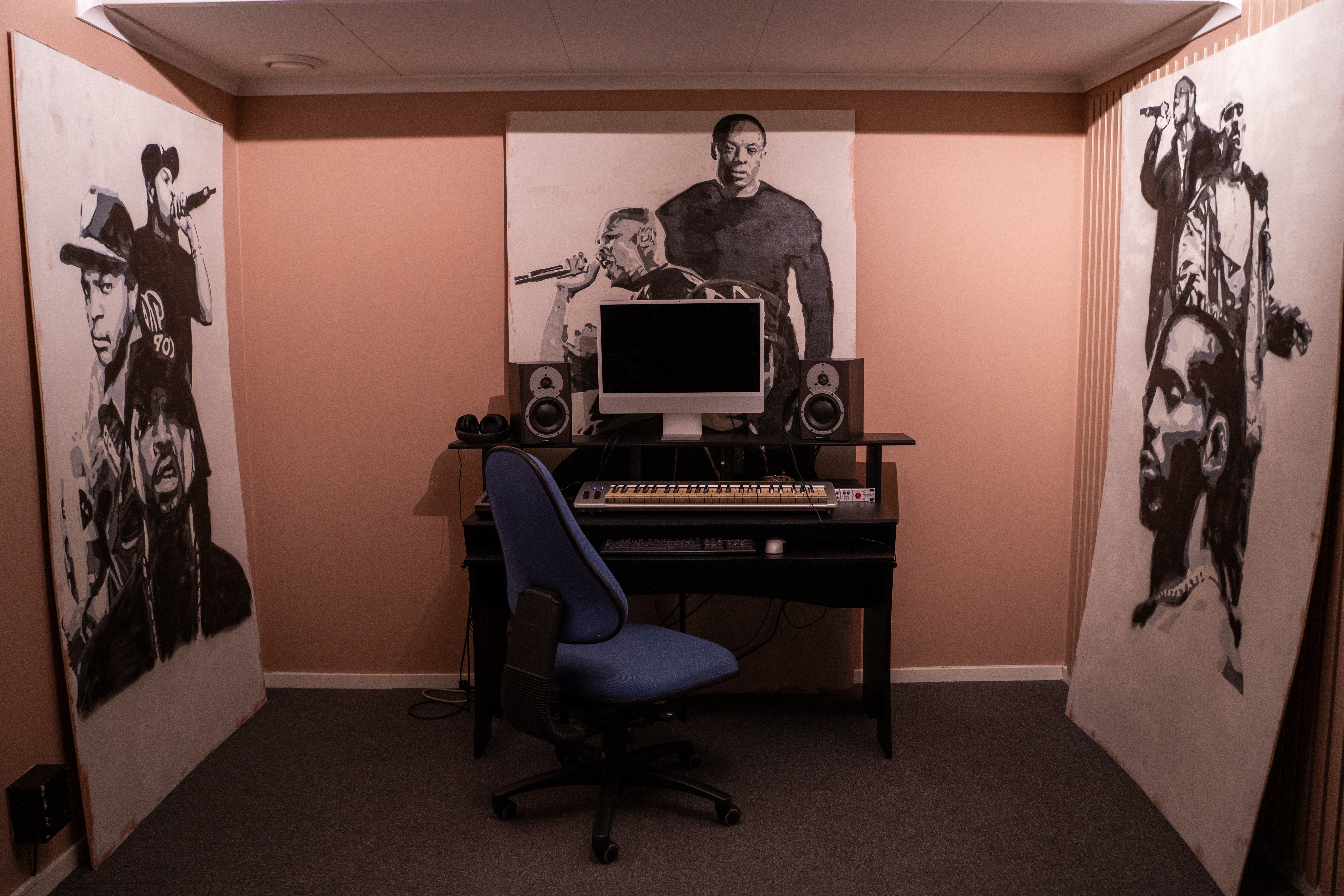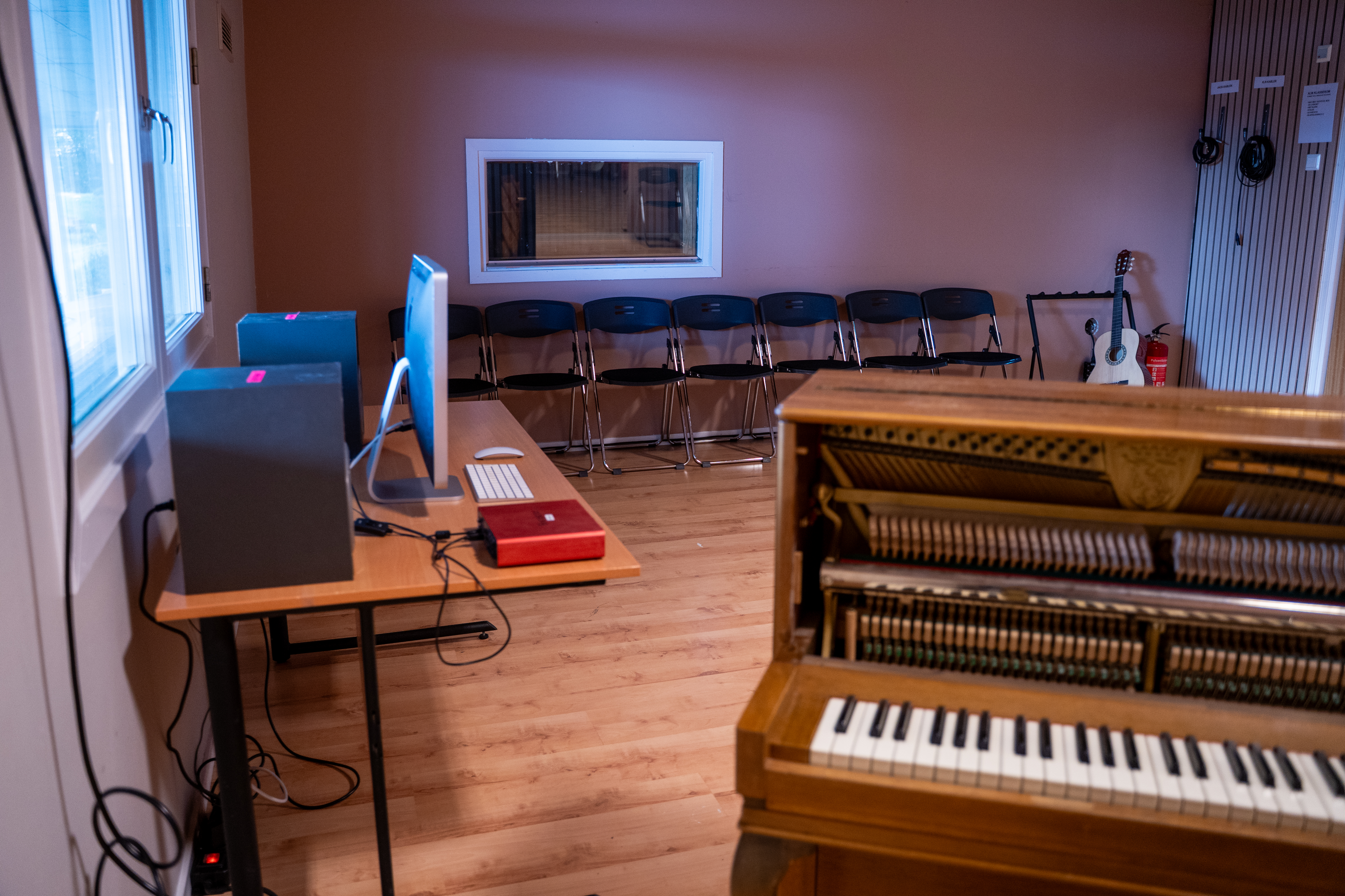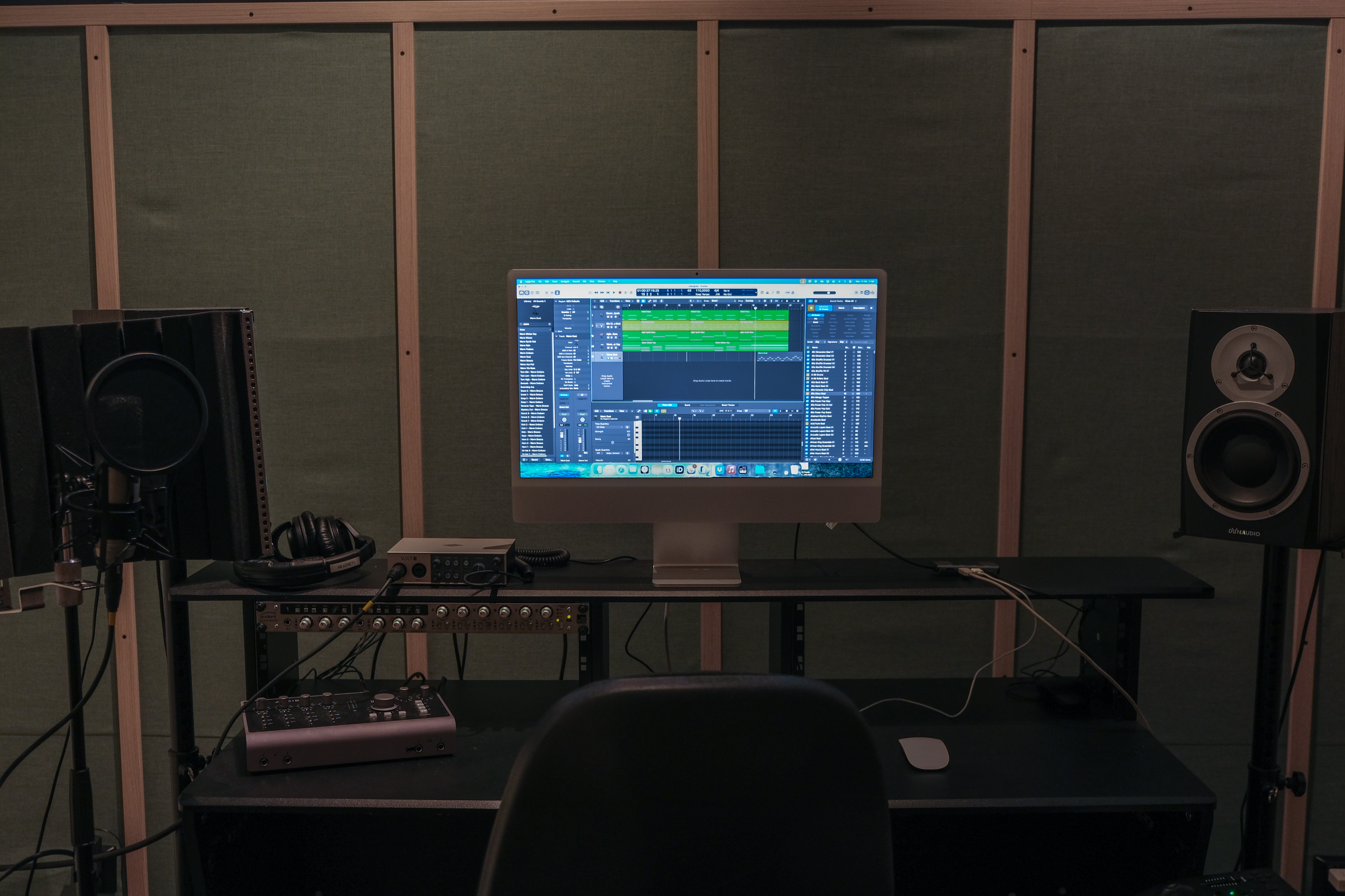 På Utøvende Musikk har du tilgang til fire musikkstudioer og tre samspillsrom, der ett er koblet opp for liveinnspilling av alle instrumenter. Vi har også konsertrom med flere fulle lyd- og lysrigger, og fire øvingsceller til egenøving. Du får bruke skolens mikrofoner, lydkort, instrumenter, programvare og headset. Det står Mac'er i tre av studioene og vi bruker Logic som programvare. Du kan også benytte egen laptop med egen programvare som du kan koble til lydkort og høytalere dersom du ønsker det.